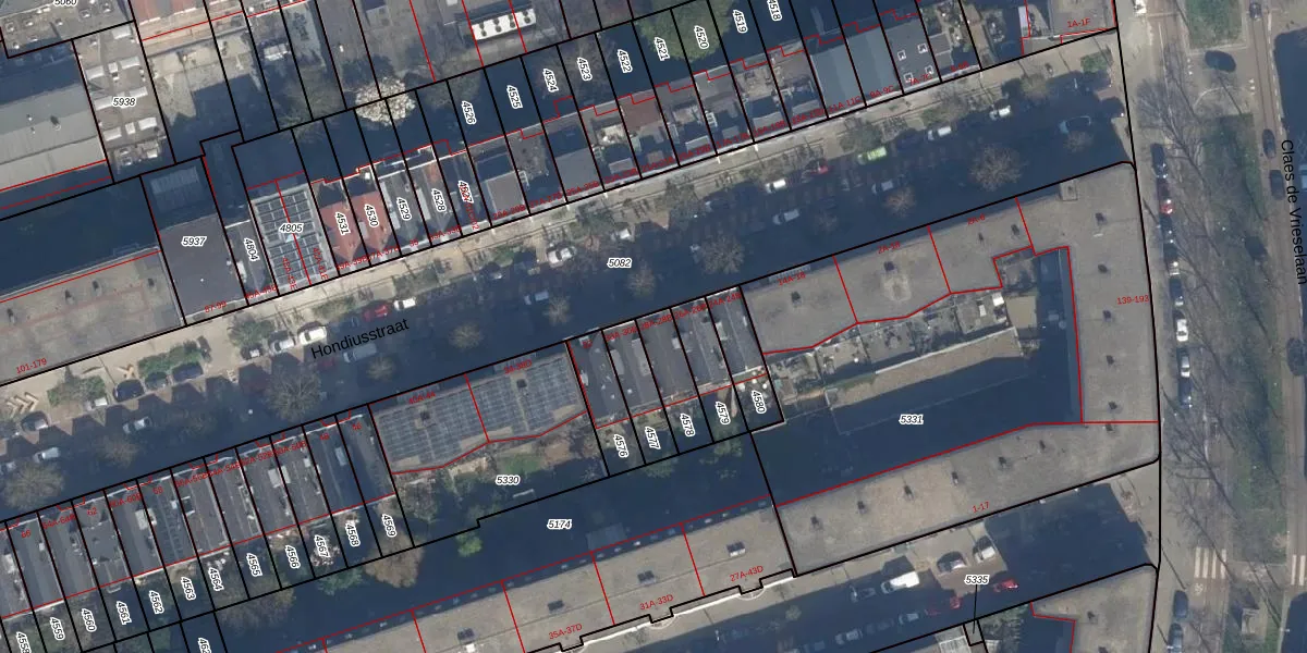 Het perceel waarop Hondiusstraat 28-A staat heeft een oppervlakte van 123 m². Dit is een middelgroot perceel. De perceeloppervlakte wordt geregistreerd door het Kadaster. Gedetailleerde informatie over de maten van dit perceel kunt u vinden in het rapport Kadastrale kaart met maatvoering van Hondiusstraat 28-A.
