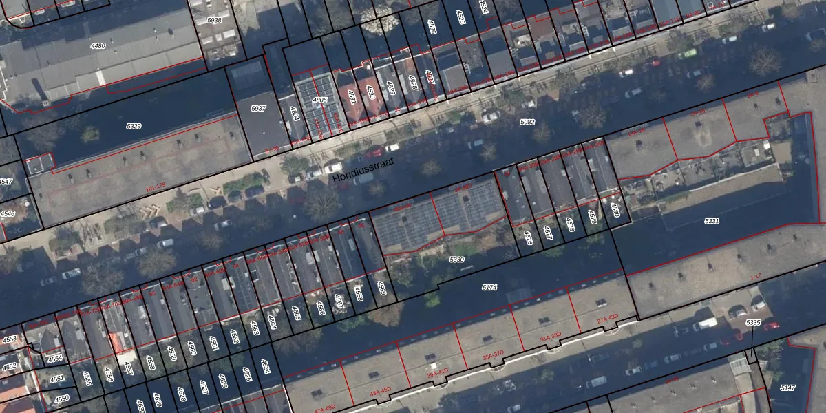 Hondiusstraat 40-B is gelegen op kadastraal perceel DHV00C5330. Deze kadastrale aanduiding is uniek en wordt gebruikt door het Kadaster om eigendomsrechten en andere zakelijke rechten vast te leggen. Het perceel maakt onderdeel uit van de kadastrale gemeente Delfshaven.