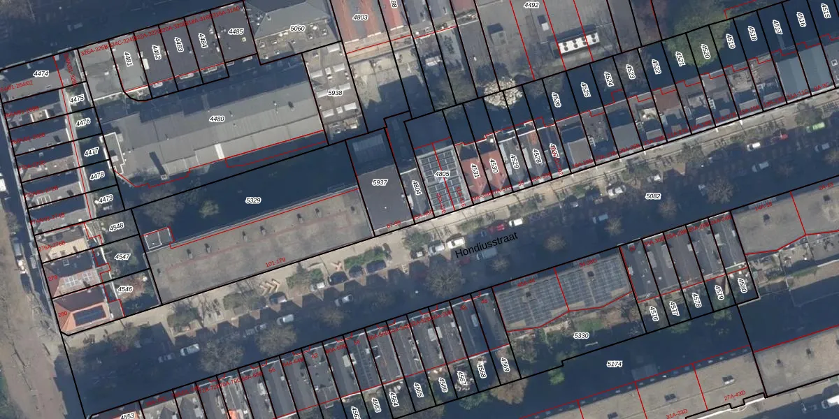 Het perceel waarop Hondiusstraat 45-A staat heeft een oppervlakte van 132 m². Dit is een middelgroot perceel. De perceeloppervlakte wordt geregistreerd door het Kadaster. Gedetailleerde informatie over de maten van dit perceel kunt u vinden in het rapport Kadastrale kaart met maatvoering van Hondiusstraat 45-A.