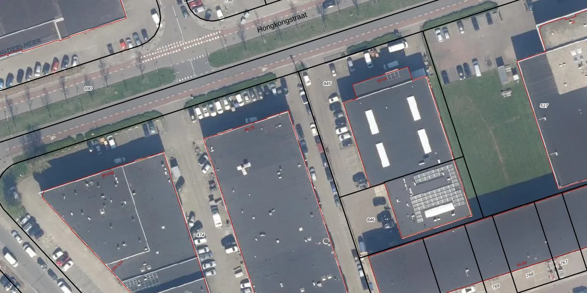 Het perceel waarop Hongkongstraat 66 staat heeft een oppervlakte van 8900 m². Dit is een zeer groot perceel. De perceeloppervlakte wordt geregistreerd door het Kadaster. Gedetailleerde informatie over de maten van dit perceel kunt u vinden in het rapport Kadastrale kaart met maatvoering van Hongkongstraat 66.