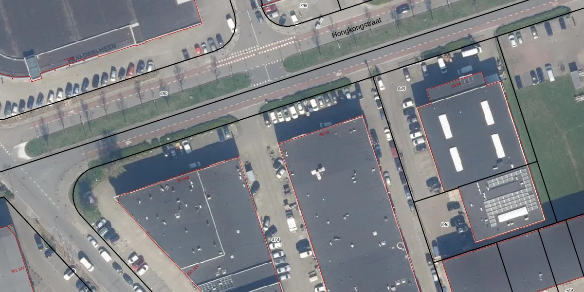 Het perceel waarop Hongkongstraat 72 staat heeft een oppervlakte van 8900 m². Dit is een zeer groot perceel. De perceeloppervlakte wordt geregistreerd door het Kadaster. Gedetailleerde informatie over de maten van dit perceel kunt u vinden in het rapport Kadastrale kaart met maatvoering van Hongkongstraat 72.