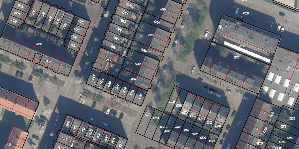 Honingbijstraat 47 is gelegen op kadastraal perceel KLG00F3479. Deze kadastrale aanduiding is uniek en wordt gebruikt door het Kadaster om eigendomsrechten en andere zakelijke rechten vast te leggen. Het perceel maakt onderdeel uit van de kadastrale gemeente Kralingen.