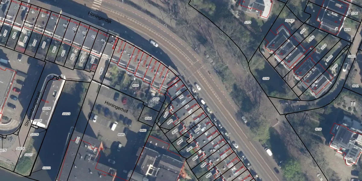 Honingerdijk 25-A is gelegen op kadastraal perceel KLG00D8583. Deze kadastrale aanduiding is uniek en wordt gebruikt door het Kadaster om eigendomsrechten en andere zakelijke rechten vast te leggen. Het perceel maakt onderdeel uit van de kadastrale gemeente Kralingen.