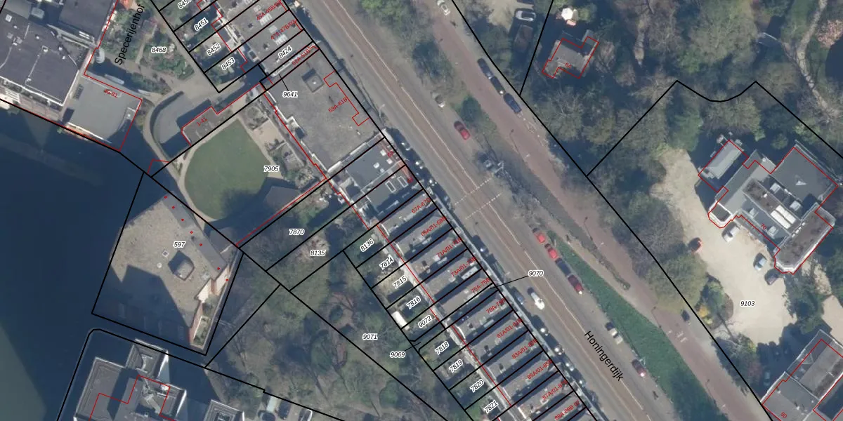 Honingerdijk 67-A is gelegen op kadastraal perceel KLG00D8136. Deze kadastrale aanduiding is uniek en wordt gebruikt door het Kadaster om eigendomsrechten en andere zakelijke rechten vast te leggen. Het perceel maakt onderdeel uit van de kadastrale gemeente Kralingen.