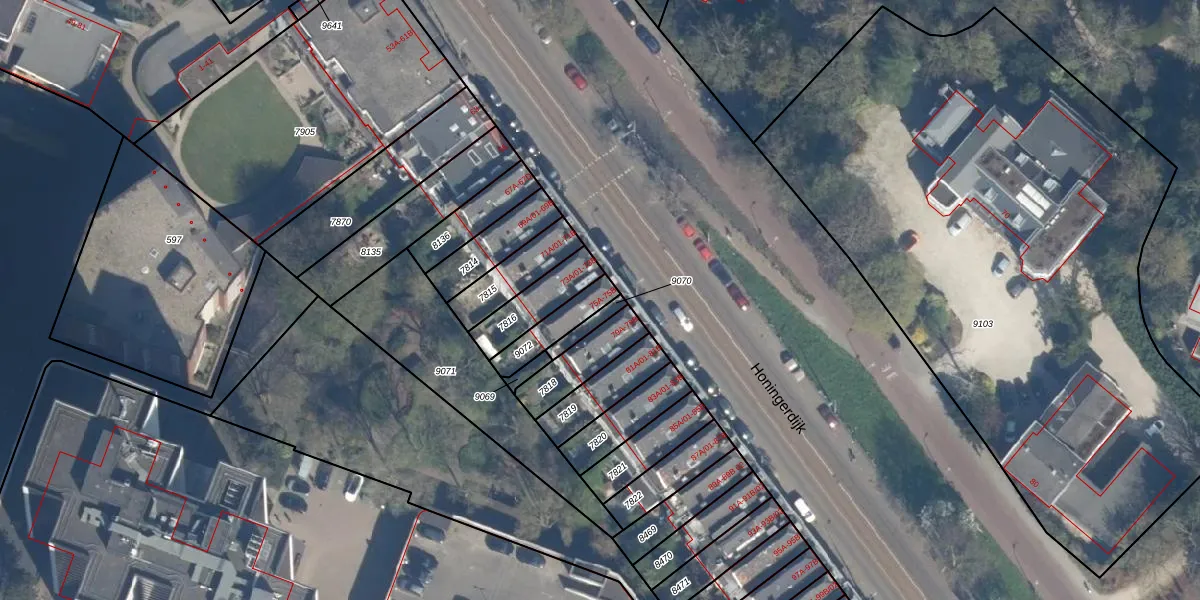 Honingerdijk 75-B is gelegen op kadastraal perceel KLG00D9072. Deze kadastrale aanduiding is uniek en wordt gebruikt door het Kadaster om eigendomsrechten en andere zakelijke rechten vast te leggen. Het perceel maakt onderdeel uit van de kadastrale gemeente Kralingen.