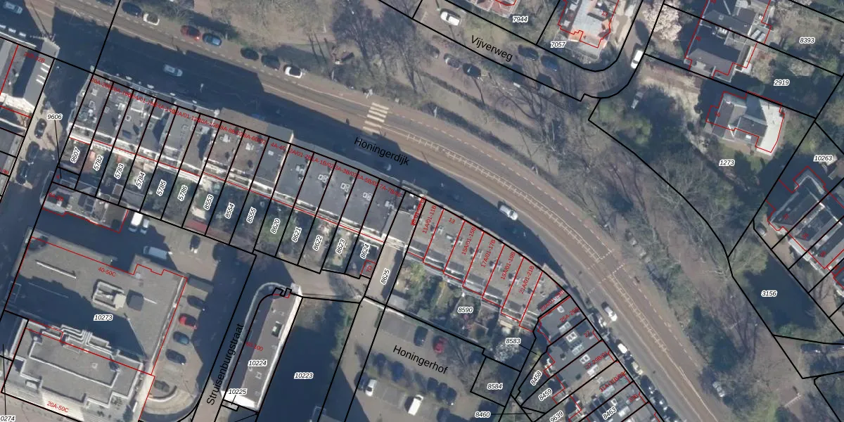 Honingerdijk 9-B-02 is gelegen op kadastraal perceel KLG00D8625. Deze kadastrale aanduiding is uniek en wordt gebruikt door het Kadaster om eigendomsrechten en andere zakelijke rechten vast te leggen. Het perceel maakt onderdeel uit van de kadastrale gemeente Kralingen.
