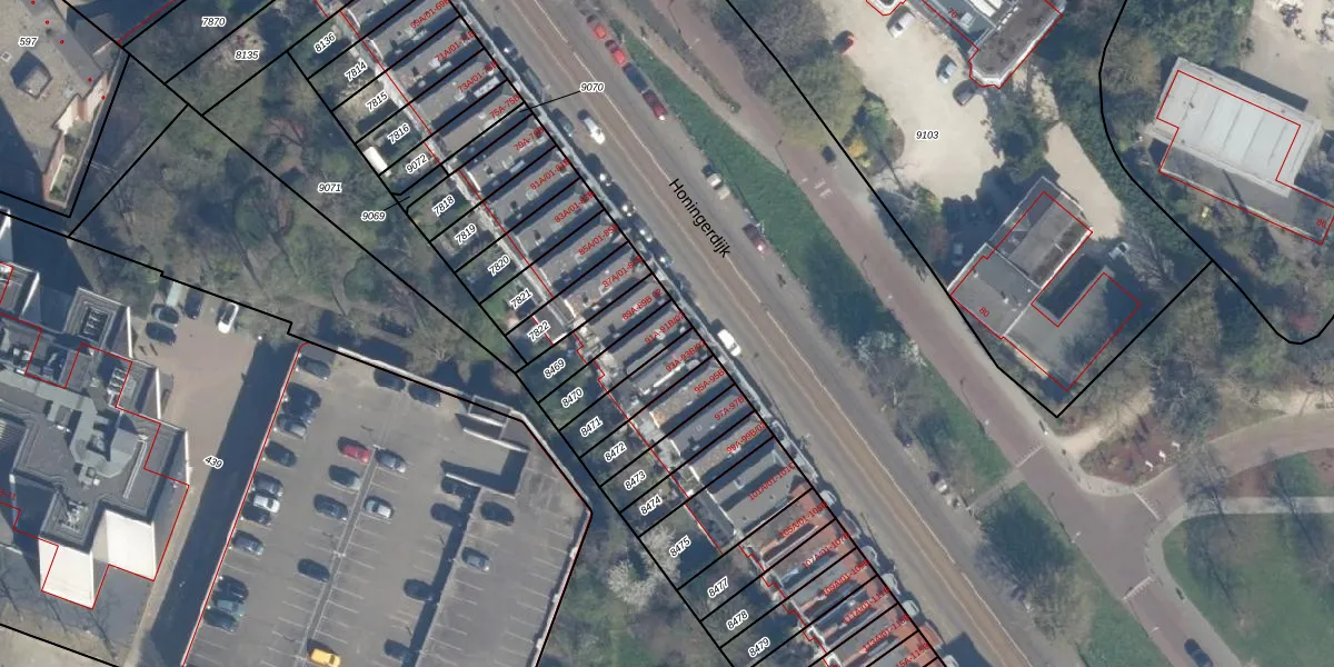 Honingerdijk 91-B-01 is gelegen op kadastraal perceel KLG00D8470. Deze kadastrale aanduiding is uniek en wordt gebruikt door het Kadaster om eigendomsrechten en andere zakelijke rechten vast te leggen. Het perceel maakt onderdeel uit van de kadastrale gemeente Kralingen.
