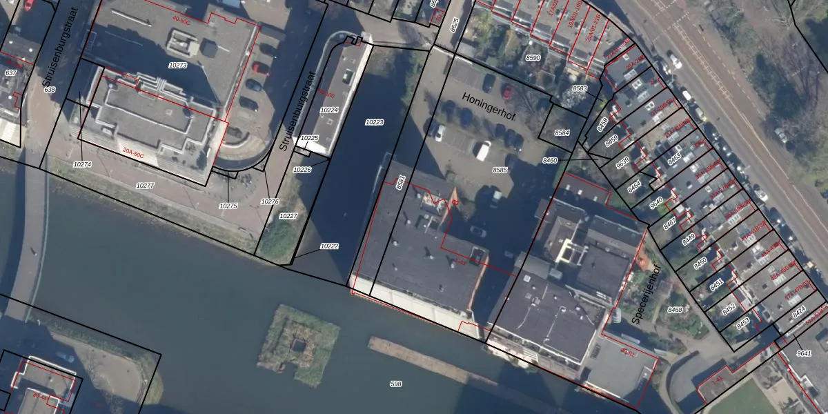 Honingerhof 43 is gelegen op kadastraal perceel KLG00D8585. Deze kadastrale aanduiding is uniek en wordt gebruikt door het Kadaster om eigendomsrechten en andere zakelijke rechten vast te leggen. Het perceel maakt onderdeel uit van de kadastrale gemeente Kralingen.