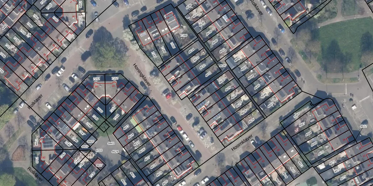 Honingklaver 13 is gelegen op kadastraal perceel HLG03B4631. Deze kadastrale aanduiding is uniek en wordt gebruikt door het Kadaster om eigendomsrechten en andere zakelijke rechten vast te leggen. Het perceel maakt onderdeel uit van de kadastrale gemeente Hillegersberg.