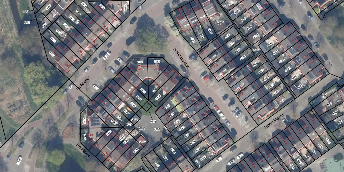 Honingklaver 18 is gelegen op kadastraal perceel HLG03B7154. Deze kadastrale aanduiding is uniek en wordt gebruikt door het Kadaster om eigendomsrechten en andere zakelijke rechten vast te leggen. Het perceel maakt onderdeel uit van de kadastrale gemeente Hillegersberg.