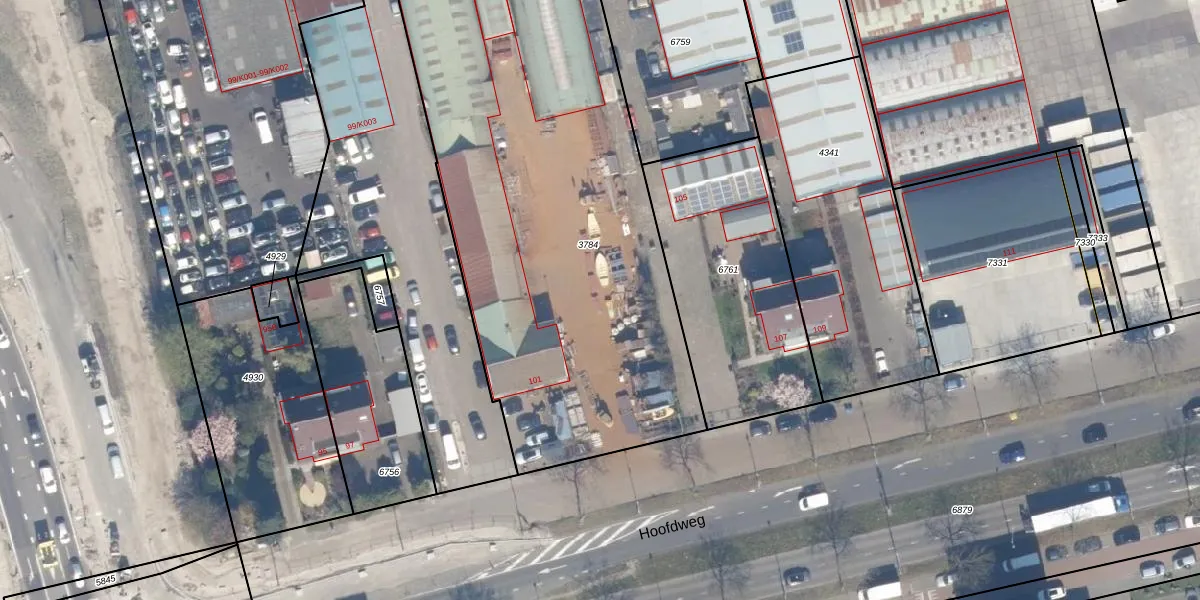 Het perceel waarop Hoofdweg 101-E staat heeft een oppervlakte van 2895 m². Dit is een zeer groot perceel. De perceeloppervlakte wordt geregistreerd door het Kadaster. Gedetailleerde informatie over de maten van dit perceel kunt u vinden in het rapport Kadastrale kaart met maatvoering van Hoofdweg 101-E.
