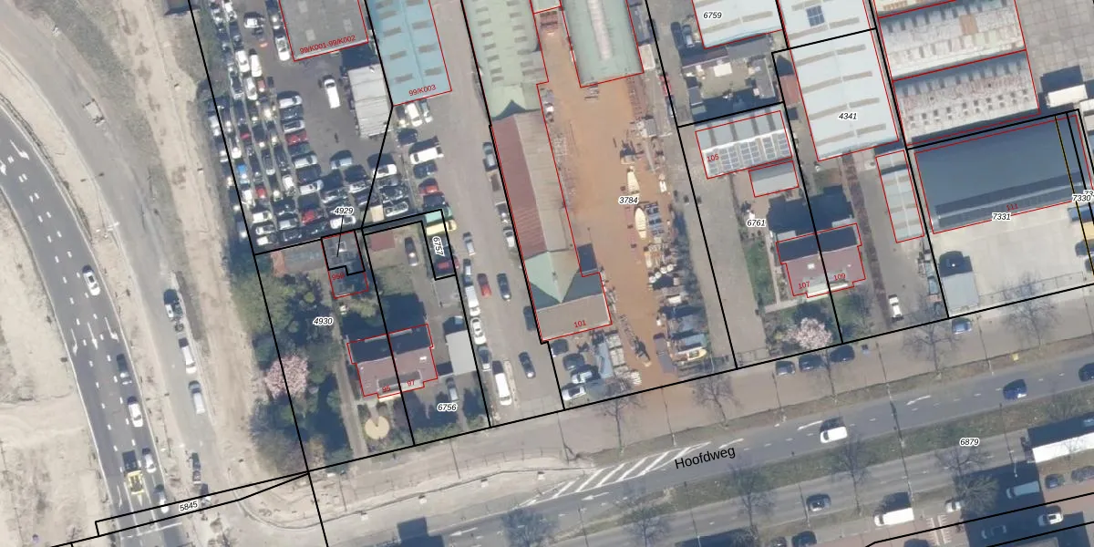 Het perceel waarop Hoofdweg 101-H staat heeft een oppervlakte van 2895 m². Dit is een zeer groot perceel. De perceeloppervlakte wordt geregistreerd door het Kadaster. Gedetailleerde informatie over de maten van dit perceel kunt u vinden in het rapport Kadastrale kaart met maatvoering van Hoofdweg 101-H.