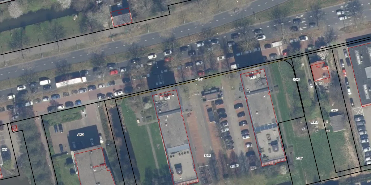 Het perceel waarop Hoofdweg 256-69 staat heeft een oppervlakte van 6080 m². Dit is een zeer groot perceel. De perceeloppervlakte wordt geregistreerd door het Kadaster. Gedetailleerde informatie over de maten van dit perceel kunt u vinden in het rapport Kadastrale kaart met maatvoering van Hoofdweg 256-69.