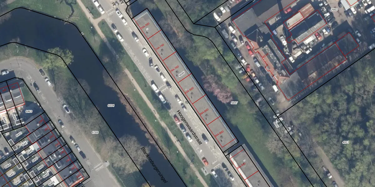 Hoogenwaardstraat 82-A is gelegen op kadastraal perceel OVS00C5695. Deze kadastrale aanduiding is uniek en wordt gebruikt door het Kadaster om eigendomsrechten en andere zakelijke rechten vast te leggen. Het perceel maakt onderdeel uit van de kadastrale gemeente Overschie.