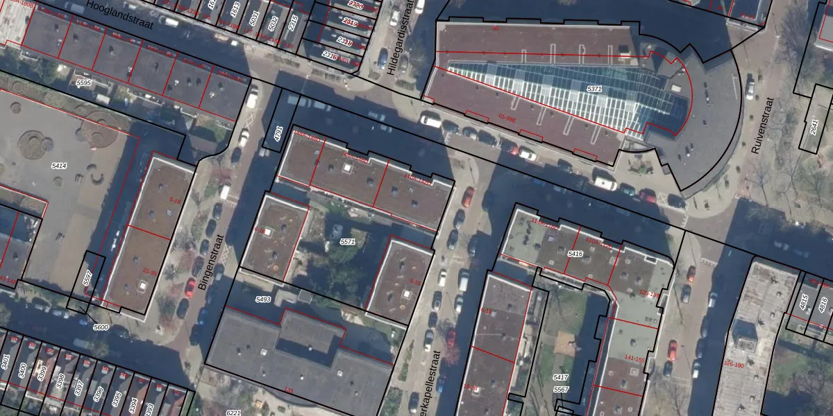Hooglandstraat 140-D is gelegen op kadastraal perceel RTD07W5571. Deze kadastrale aanduiding is uniek en wordt gebruikt door het Kadaster om eigendomsrechten en andere zakelijke rechten vast te leggen. Het perceel maakt onderdeel uit van de kadastrale gemeente Rotterdam.