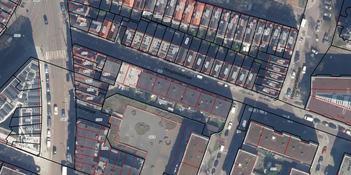 Hooglandstraat 170-A is gelegen op kadastraal perceel RTD07W5595. Deze kadastrale aanduiding is uniek en wordt gebruikt door het Kadaster om eigendomsrechten en andere zakelijke rechten vast te leggen. Het perceel maakt onderdeel uit van de kadastrale gemeente Rotterdam.