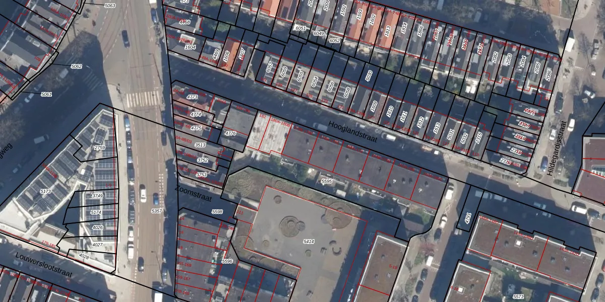 Hooglandstraat 178-B is gelegen op kadastraal perceel RTD07W5595. Deze kadastrale aanduiding is uniek en wordt gebruikt door het Kadaster om eigendomsrechten en andere zakelijke rechten vast te leggen. Het perceel maakt onderdeel uit van de kadastrale gemeente Rotterdam.