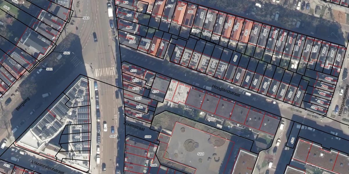 Hooglandstraat 182 is gelegen op kadastraal perceel RTD07W5595. Deze kadastrale aanduiding is uniek en wordt gebruikt door het Kadaster om eigendomsrechten en andere zakelijke rechten vast te leggen. Het perceel maakt onderdeel uit van de kadastrale gemeente Rotterdam.