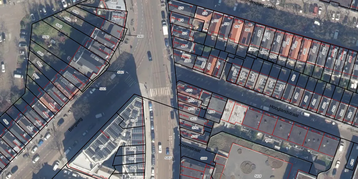 Hooglandstraat 204-A is gelegen op kadastraal perceel RTD07W4773. Deze kadastrale aanduiding is uniek en wordt gebruikt door het Kadaster om eigendomsrechten en andere zakelijke rechten vast te leggen. Het perceel maakt onderdeel uit van de kadastrale gemeente Rotterdam.