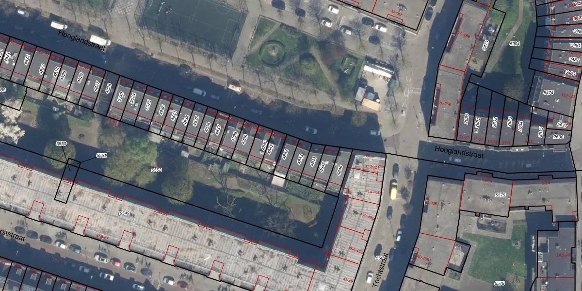 Het perceel waarop Hooglandstraat 44-A staat heeft een oppervlakte van 68 m². Dit is een klein perceel. De perceeloppervlakte wordt geregistreerd door het Kadaster. Gedetailleerde informatie over de maten van dit perceel kunt u vinden in het rapport Kadastrale kaart met maatvoering van Hooglandstraat 44-A.