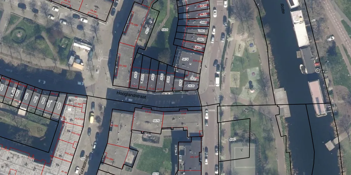 Hooglandstraat 7 is gelegen op kadastraal perceel RTD09Y2635. Deze kadastrale aanduiding is uniek en wordt gebruikt door het Kadaster om eigendomsrechten en andere zakelijke rechten vast te leggen. Het perceel maakt onderdeel uit van de kadastrale gemeente Rotterdam.