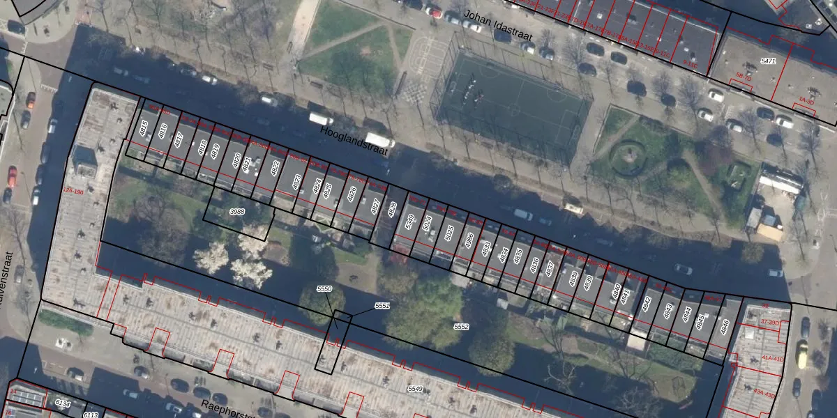 Hooglandstraat 72 is gelegen op kadastraal perceel RTD07W5349. Deze kadastrale aanduiding is uniek en wordt gebruikt door het Kadaster om eigendomsrechten en andere zakelijke rechten vast te leggen. Het perceel maakt onderdeel uit van de kadastrale gemeente Rotterdam.