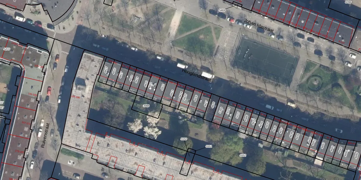 Hooglandstraat 80-C is gelegen op kadastraal perceel RTD07W4824. Deze kadastrale aanduiding is uniek en wordt gebruikt door het Kadaster om eigendomsrechten en andere zakelijke rechten vast te leggen. Het perceel maakt onderdeel uit van de kadastrale gemeente Rotterdam.