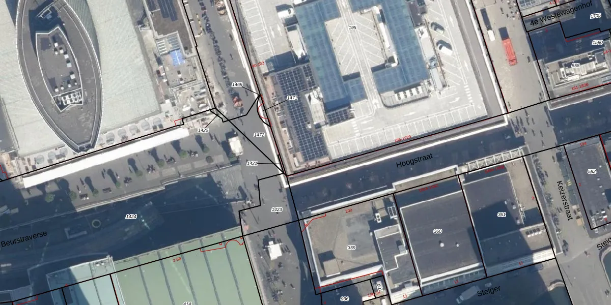Hoogstraat 1223 is gelegen op kadastraal perceel RTD04AF195. Deze kadastrale aanduiding is uniek en wordt gebruikt door het Kadaster om eigendomsrechten en andere zakelijke rechten vast te leggen. Het perceel maakt onderdeel uit van de kadastrale gemeente Rotterdam.