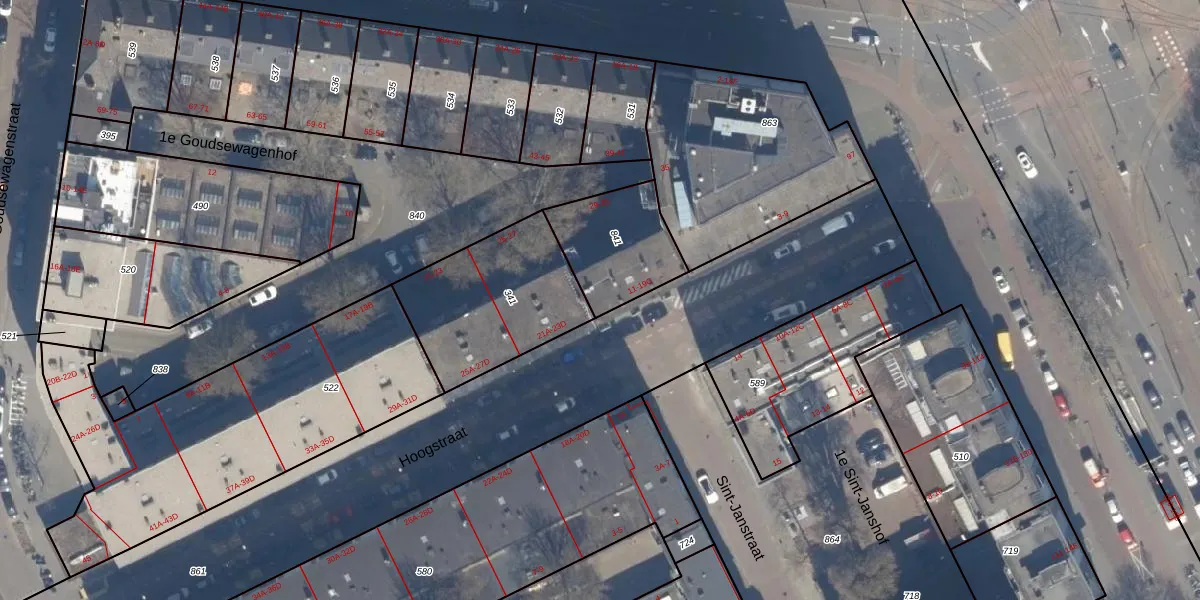 Het perceel waarop Hoogstraat 17-C staat heeft een oppervlakte van 324 m². Dit is een groot perceel. De perceeloppervlakte wordt geregistreerd door het Kadaster. Gedetailleerde informatie over de maten van dit perceel kunt u vinden in het rapport Kadastrale kaart met maatvoering van Hoogstraat 17-C.