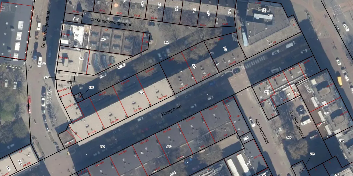 Het perceel waarop Hoogstraat 27-B staat heeft een oppervlakte van 560 m². Dit is een groot perceel. De perceeloppervlakte wordt geregistreerd door het Kadaster. Gedetailleerde informatie over de maten van dit perceel kunt u vinden in het rapport Kadastrale kaart met maatvoering van Hoogstraat 27-B.
