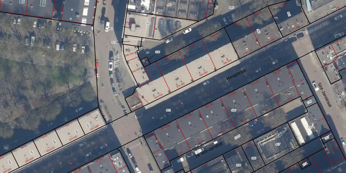 Hoogstraat 31-A is gelegen op kadastraal perceel RTD04AF522. Deze kadastrale aanduiding is uniek en wordt gebruikt door het Kadaster om eigendomsrechten en andere zakelijke rechten vast te leggen. Het perceel maakt onderdeel uit van de kadastrale gemeente Rotterdam.