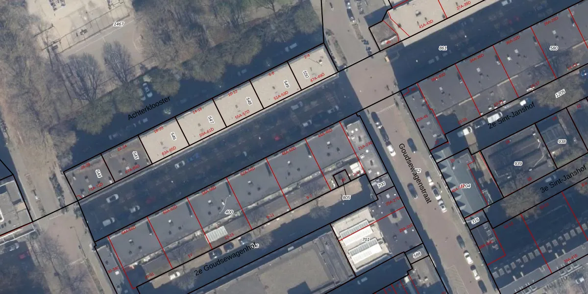 Hoogstraat 50-A is gelegen op kadastraal perceel RTD04AF400. Deze kadastrale aanduiding is uniek en wordt gebruikt door het Kadaster om eigendomsrechten en andere zakelijke rechten vast te leggen. Het perceel maakt onderdeel uit van de kadastrale gemeente Rotterdam.