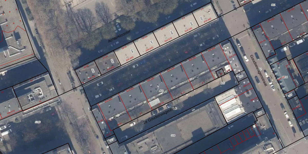 Hoogstraat 56-A is gelegen op kadastraal perceel RTD04AF400. Deze kadastrale aanduiding is uniek en wordt gebruikt door het Kadaster om eigendomsrechten en andere zakelijke rechten vast te leggen. Het perceel maakt onderdeel uit van de kadastrale gemeente Rotterdam.