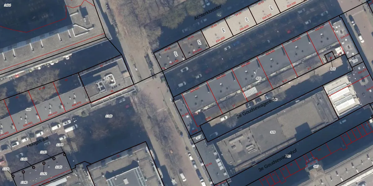 Hoogstraat 66-B is gelegen op kadastraal perceel RTD04AF400. Deze kadastrale aanduiding is uniek en wordt gebruikt door het Kadaster om eigendomsrechten en andere zakelijke rechten vast te leggen. Het perceel maakt onderdeel uit van de kadastrale gemeente Rotterdam.
