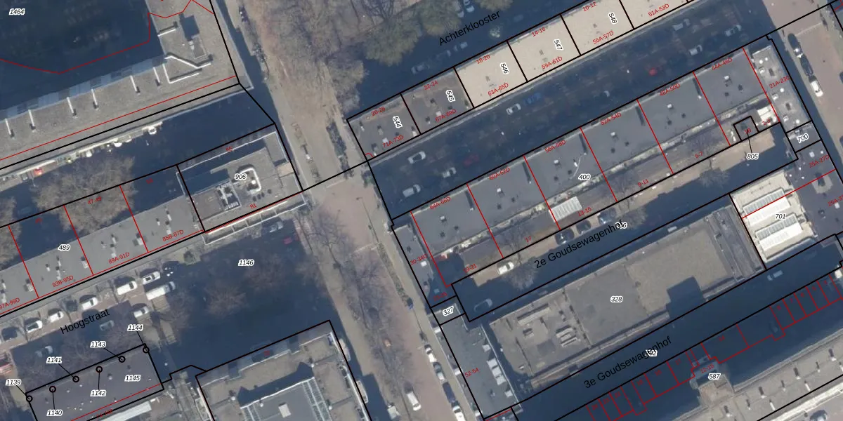 Het perceel waarop Hoogstraat 66-D staat heeft een oppervlakte van 2030 m². Dit is een zeer groot perceel. De perceeloppervlakte wordt geregistreerd door het Kadaster. Gedetailleerde informatie over de maten van dit perceel kunt u vinden in het rapport Kadastrale kaart met maatvoering van Hoogstraat 66-D.
