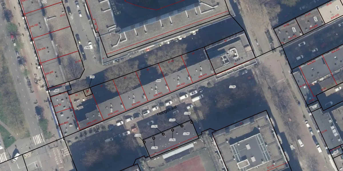 Hoogstraat 91-D is gelegen op kadastraal perceel RTD04AF489. Deze kadastrale aanduiding is uniek en wordt gebruikt door het Kadaster om eigendomsrechten en andere zakelijke rechten vast te leggen. Het perceel maakt onderdeel uit van de kadastrale gemeente Rotterdam.