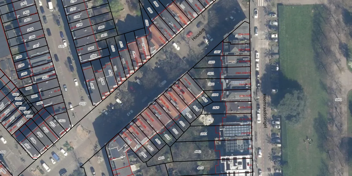 Hooidrift 16-A-01 is gelegen op kadastraal perceel DHV00C1424. Deze kadastrale aanduiding is uniek en wordt gebruikt door het Kadaster om eigendomsrechten en andere zakelijke rechten vast te leggen. Het perceel maakt onderdeel uit van de kadastrale gemeente Delfshaven.