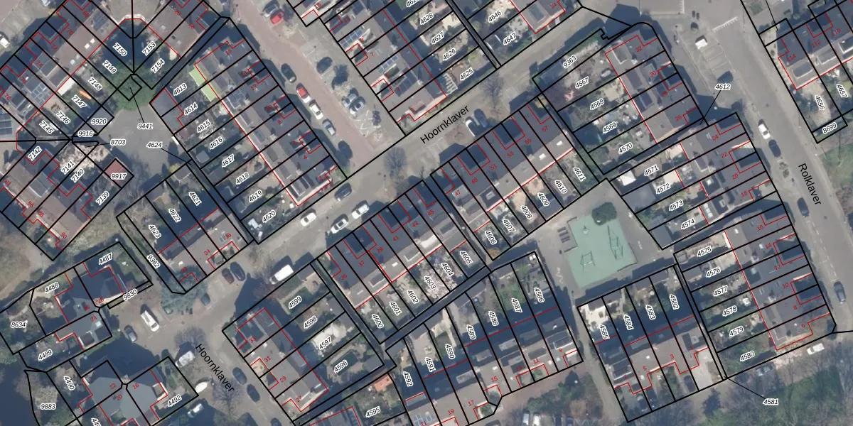 Hoornklaver 45 is gelegen op kadastraal perceel HLG03B4605. Deze kadastrale aanduiding is uniek en wordt gebruikt door het Kadaster om eigendomsrechten en andere zakelijke rechten vast te leggen. Het perceel maakt onderdeel uit van de kadastrale gemeente Hillegersberg.