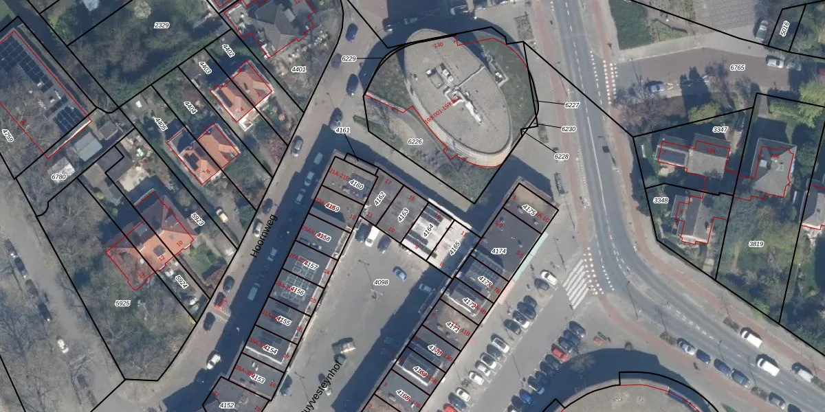 Hoornweg 15 is gelegen op kadastraal perceel OVS00C4163. Deze kadastrale aanduiding is uniek en wordt gebruikt door het Kadaster om eigendomsrechten en andere zakelijke rechten vast te leggen. Het perceel maakt onderdeel uit van de kadastrale gemeente Overschie.
