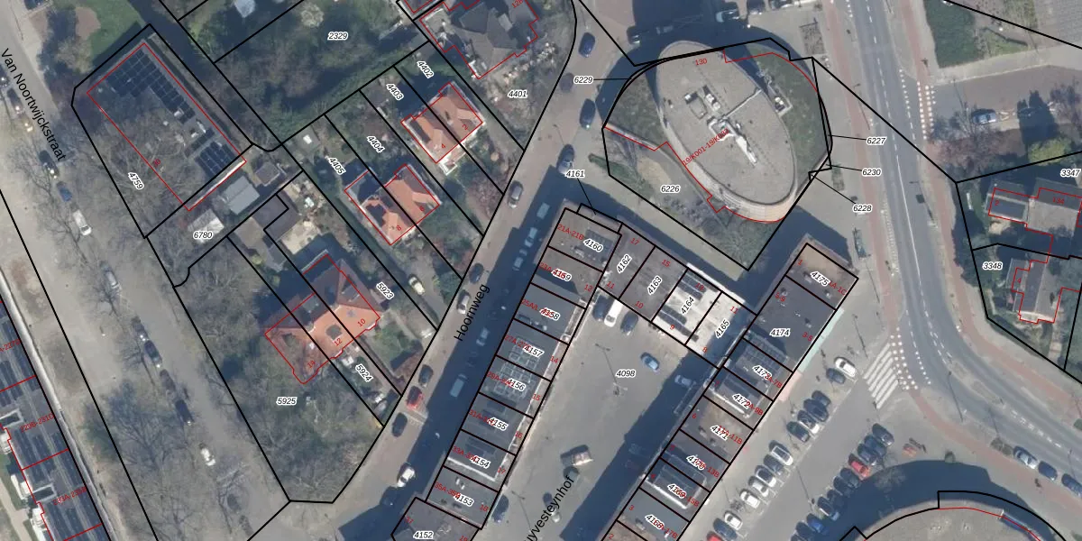 Hoornweg 23-A is gelegen op kadastraal perceel OVS00C4159. Deze kadastrale aanduiding is uniek en wordt gebruikt door het Kadaster om eigendomsrechten en andere zakelijke rechten vast te leggen. Het perceel maakt onderdeel uit van de kadastrale gemeente Overschie.