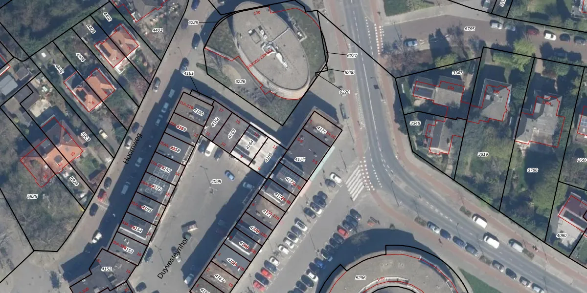 Hoornweg 7-A is gelegen op kadastraal perceel OVS00C4174. Deze kadastrale aanduiding is uniek en wordt gebruikt door het Kadaster om eigendomsrechten en andere zakelijke rechten vast te leggen. Het perceel maakt onderdeel uit van de kadastrale gemeente Overschie.