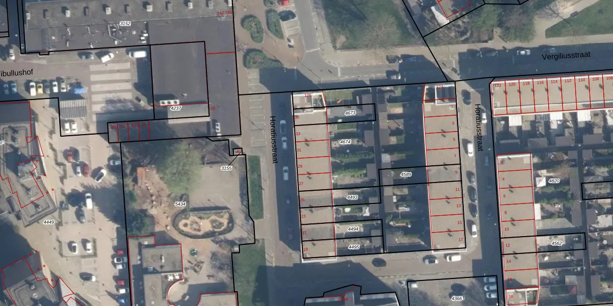 Het perceel waarop Horatiusstraat 31 staat heeft een oppervlakte van 2179 m². Dit is een zeer groot perceel. De perceeloppervlakte wordt geregistreerd door het Kadaster. Gedetailleerde informatie over de maten van dit perceel kunt u vinden in het rapport Kadastrale kaart met maatvoering van Horatiusstraat 31.