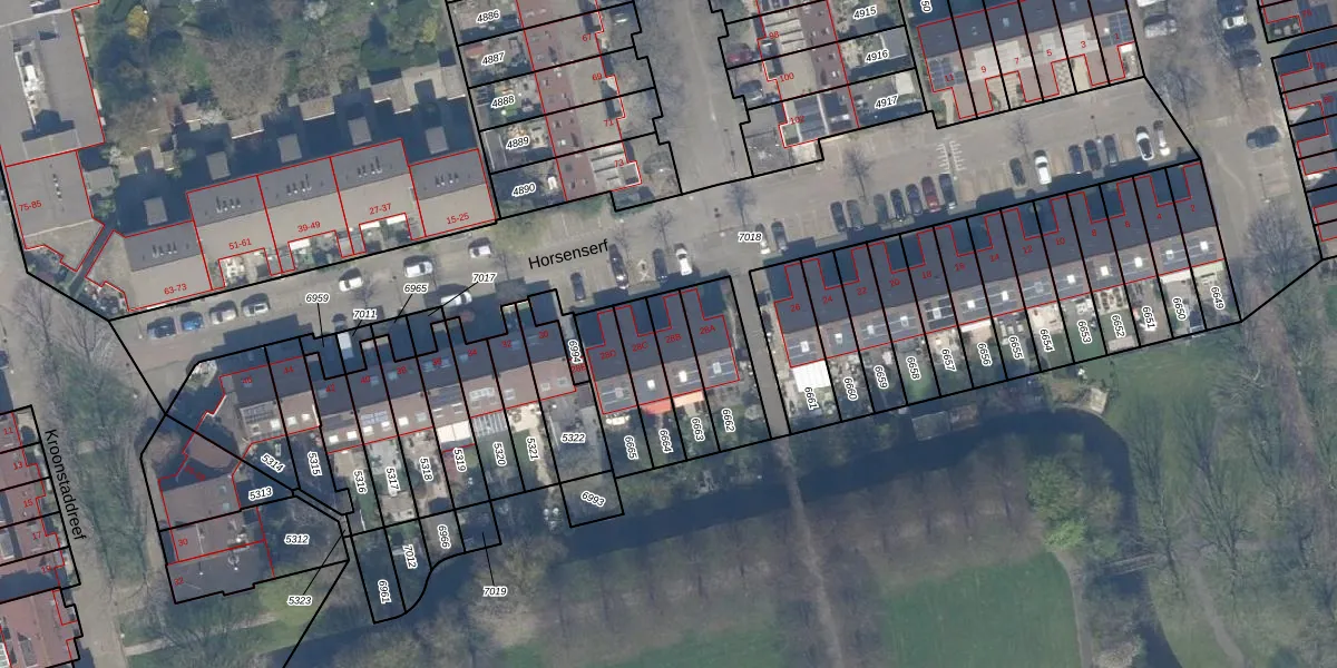Horsenserf 28-B is gelegen op kadastraal perceel HLG03C6663. Deze kadastrale aanduiding is uniek en wordt gebruikt door het Kadaster om eigendomsrechten en andere zakelijke rechten vast te leggen. Het perceel maakt onderdeel uit van de kadastrale gemeente Hillegersberg.