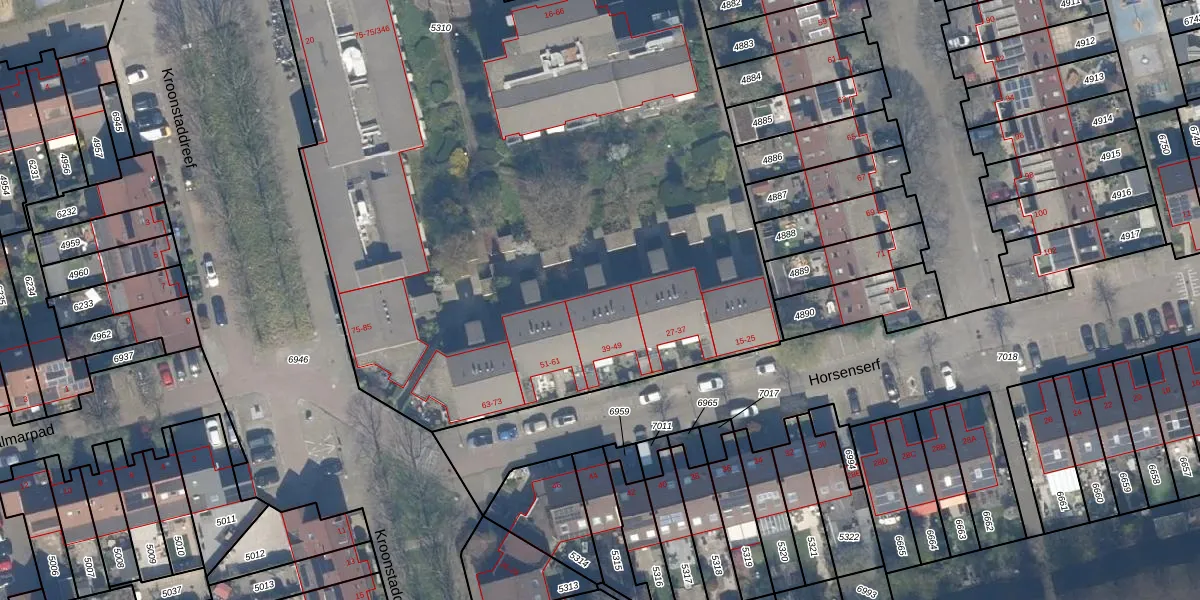 Horsenserf 47 is gelegen op kadastraal perceel HLG03C5310. Deze kadastrale aanduiding is uniek en wordt gebruikt door het Kadaster om eigendomsrechten en andere zakelijke rechten vast te leggen. Het perceel maakt onderdeel uit van de kadastrale gemeente Hillegersberg.