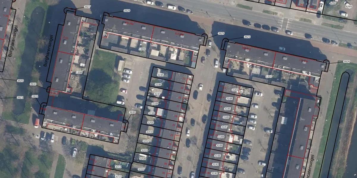 Gebruik de zoekbalk of klik op een perceel voor informatie over de adressen binnen dit perceel.