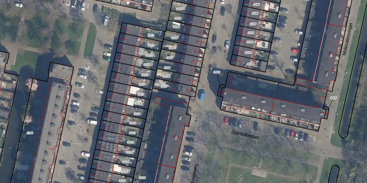 Gebruik de zoekbalk of klik op een perceel voor informatie over de adressen binnen dit perceel.