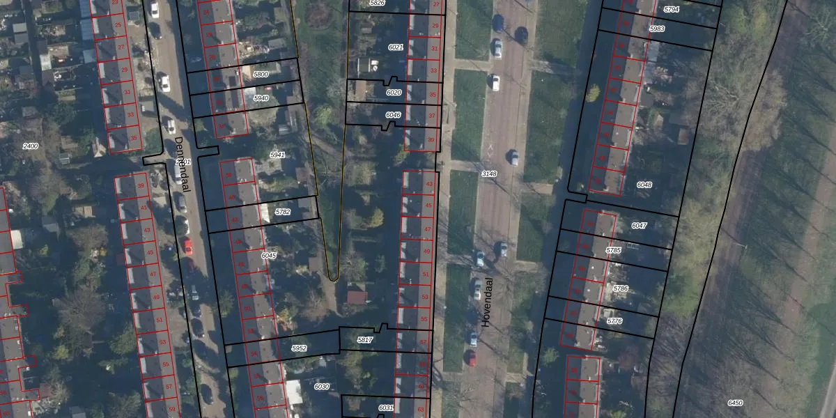 Hovendaal 45 is gelegen op kadastraal perceel RTD05V6045. Deze kadastrale aanduiding is uniek en wordt gebruikt door het Kadaster om eigendomsrechten en andere zakelijke rechten vast te leggen. Het perceel maakt onderdeel uit van de kadastrale gemeente Rotterdam.