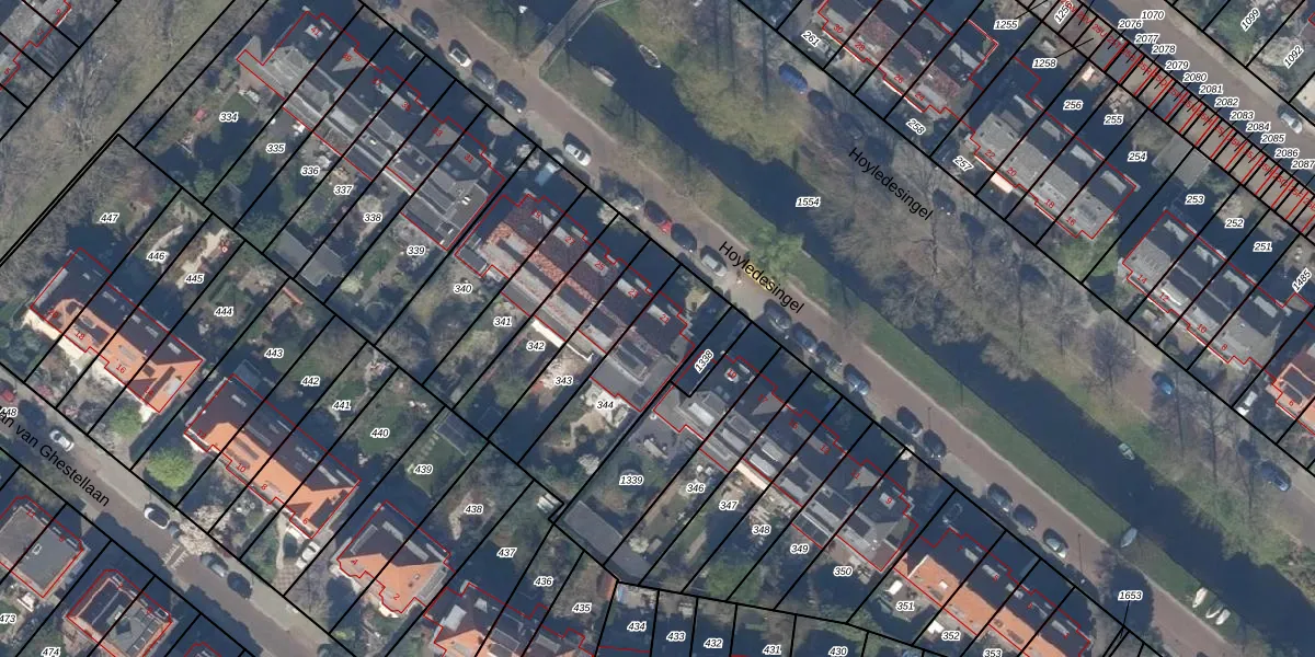 Het perceel waarop Hoyledesingel 21 staat heeft een oppervlakte van 383 m². Dit is een groot perceel. De perceeloppervlakte wordt geregistreerd door het Kadaster. Gedetailleerde informatie over de maten van dit perceel kunt u vinden in het rapport Kadastrale kaart met maatvoering van Hoyledesingel 21.