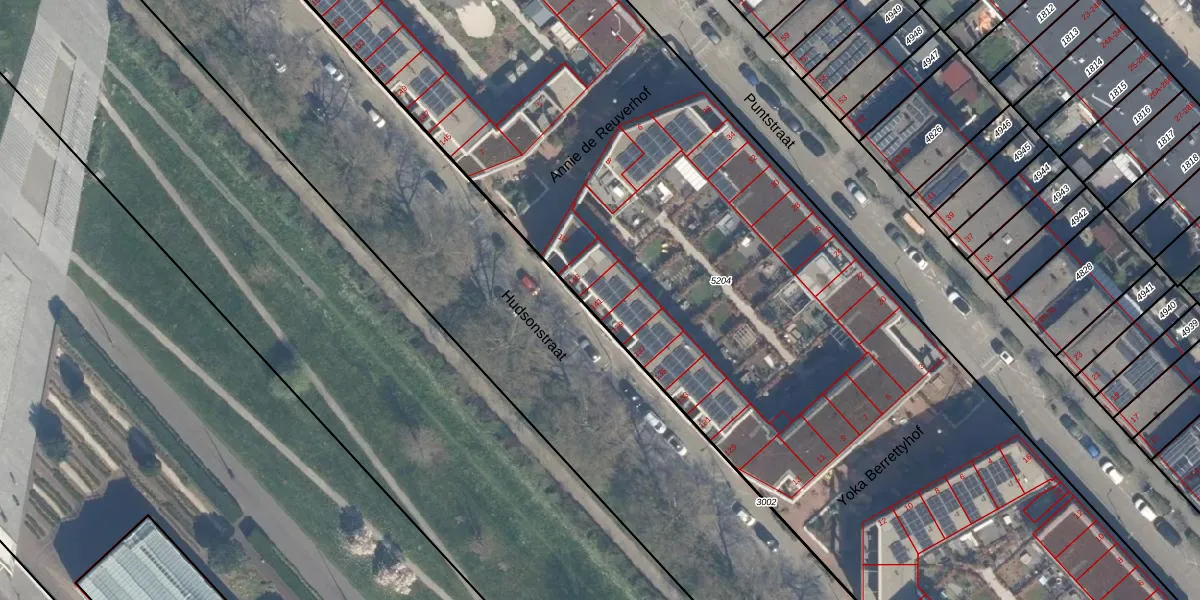 Het perceel waarop Hudsonstraat 141 staat heeft een oppervlakte van 8175 m². Dit is een zeer groot perceel. De perceeloppervlakte wordt geregistreerd door het Kadaster. Gedetailleerde informatie over de maten van dit perceel kunt u vinden in het rapport Kadastrale kaart met maatvoering van Hudsonstraat 141.