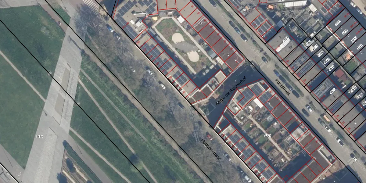 Het perceel waarop Hudsonstraat 145 staat heeft een oppervlakte van 8175 m². Dit is een zeer groot perceel. De perceeloppervlakte wordt geregistreerd door het Kadaster. Gedetailleerde informatie over de maten van dit perceel kunt u vinden in het rapport Kadastrale kaart met maatvoering van Hudsonstraat 145.